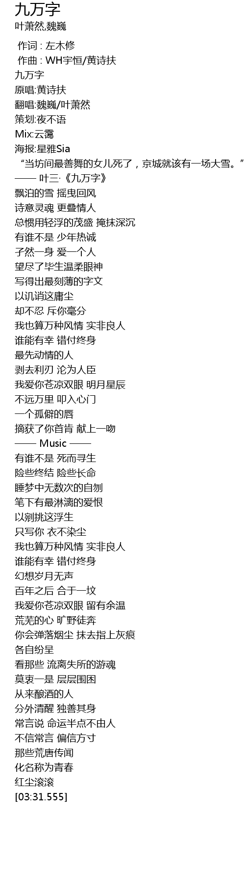 | [00:03.213] | 翻唱:魏巍/叶萧然 |