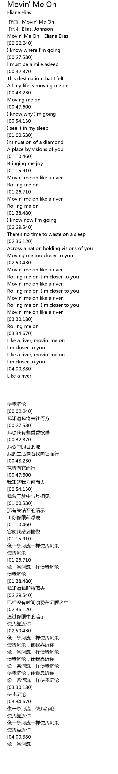 | [00:00.780] | Movin' Me On - Eliane Elias |