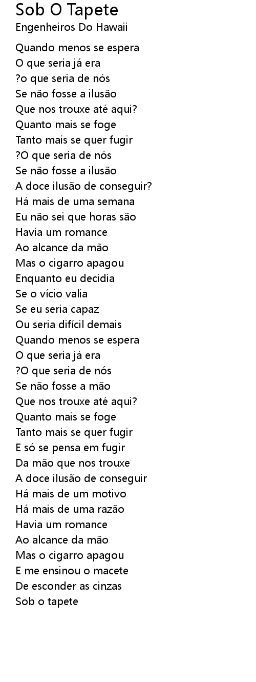 | Song | Sob O Tapete |