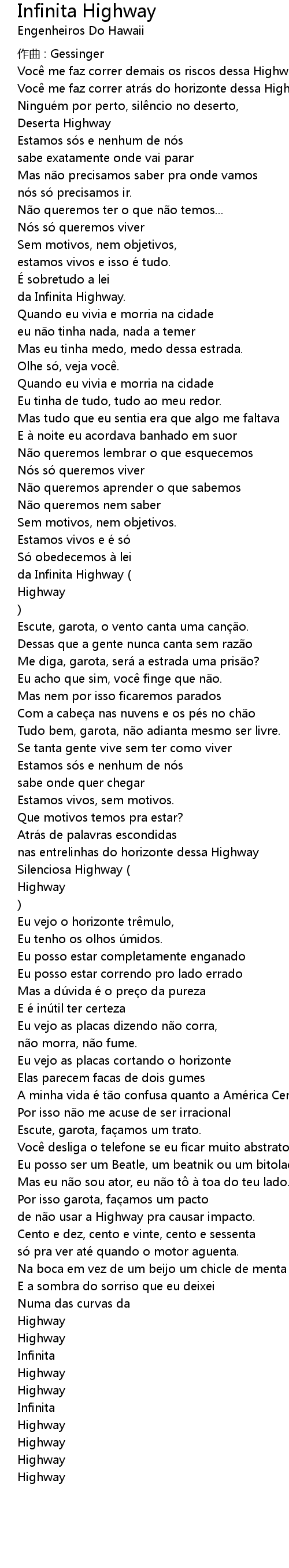 | Voc me faz correr demais os riscos dessa Highway | |
