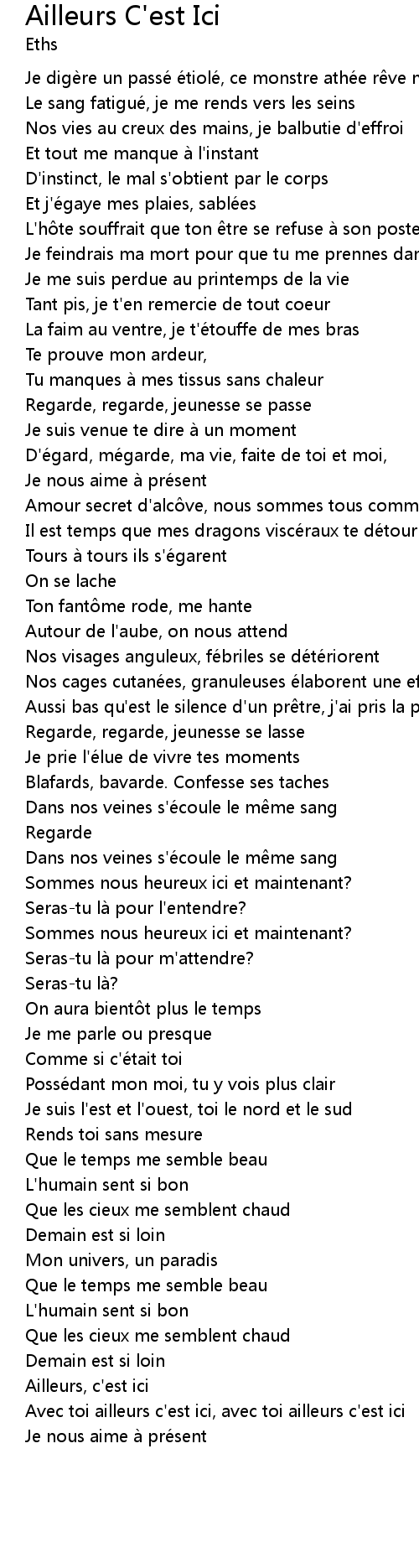 | Avec toi ailleurs c' est ici, avec toi ailleurs c' est ici | |