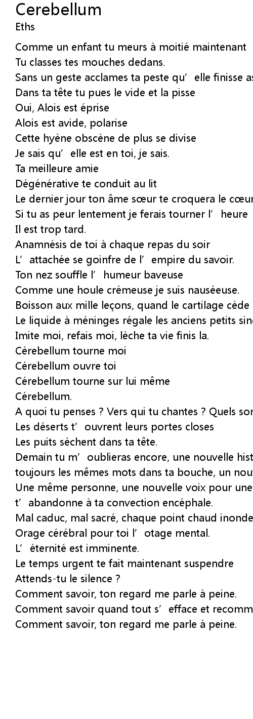 | Une m me personne, une nouvelle voix pour une m me parole, chaque seconde t' abandonne a ta convection ence phale. | |
