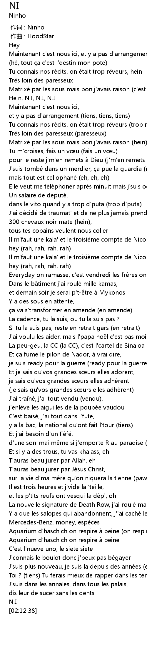 | [01:36.65] | sur la vie d'ma mère qu'on niquera la tienne (paw) |