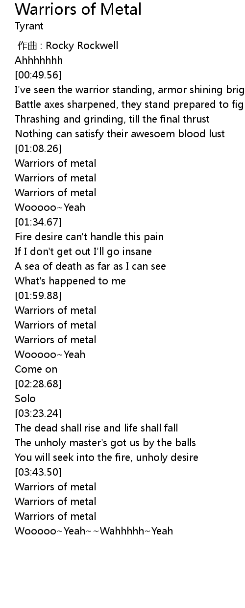 | [00:58.33] | Battle axes sharpened, they stand prepared to fight |