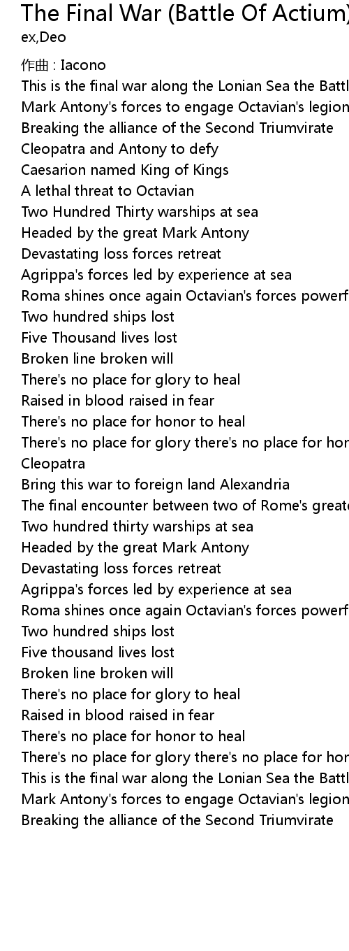 | This is the final war along the Lonian Sea the Battle of Actium | |
