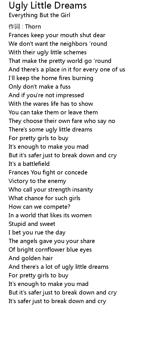 | And there's a lot of ugly little dreams | |