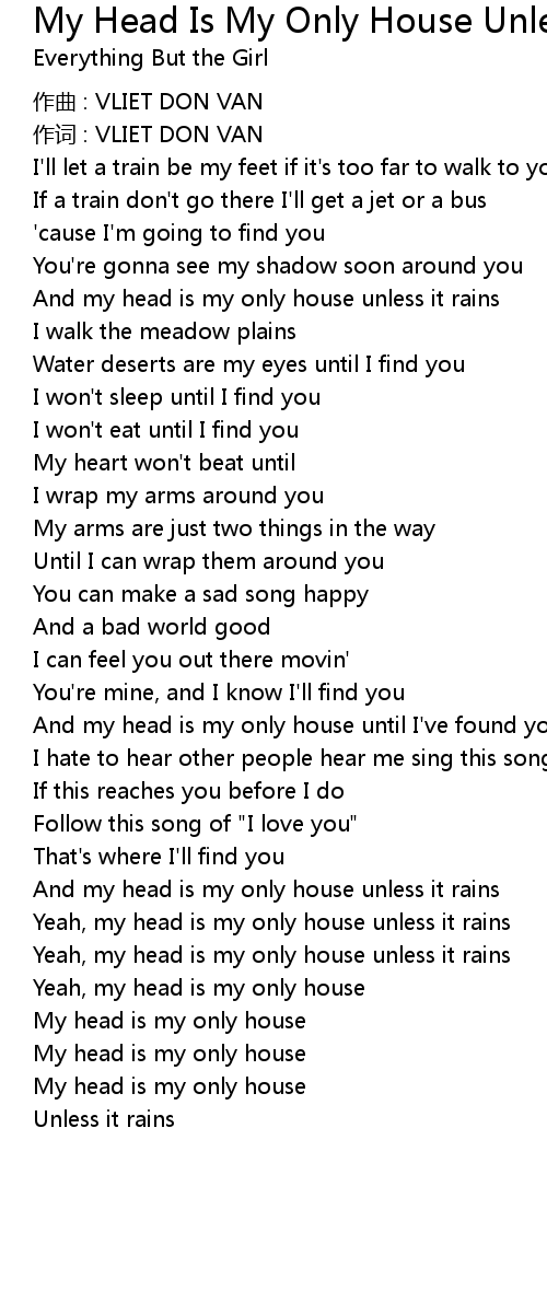 | And my head is my only house until I' ve found you | |
