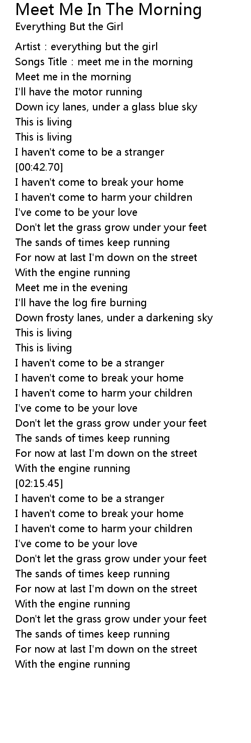 | [00:05.19] | Songs Title: meet me in the morning |