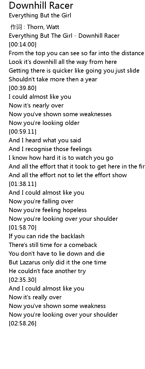 | [00:02.00] | Everything But The Girl Downhill Racer |