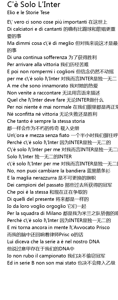 | [01:36.060] | c\'è solo l\'Inter per me 对我而言INTER是独一无二的 |