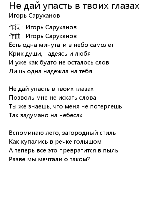| Song | Не дай упасть в твоих глазах |