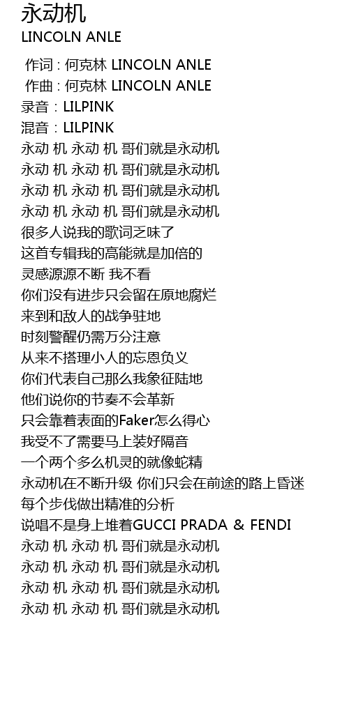 | [00:34.433] | 永动 机 永动 机 哥们就是永动机 |