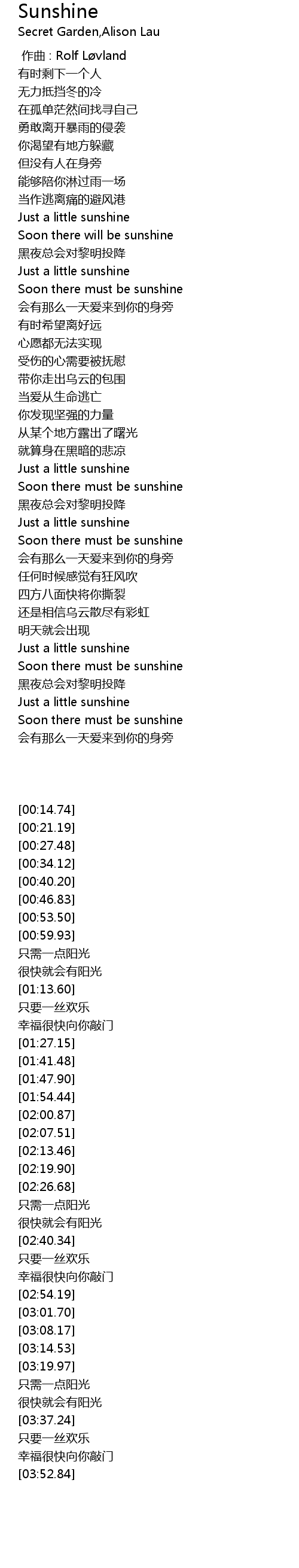 | [03:30.23] | Just a little sunshine |