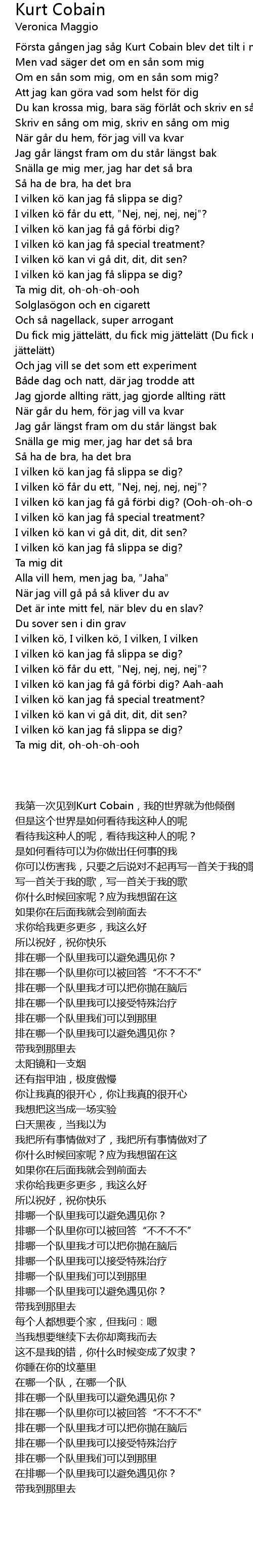 | [00:04.34] | F rsta g ngen jag s g Kurt Cobain blev det tilt i mig |