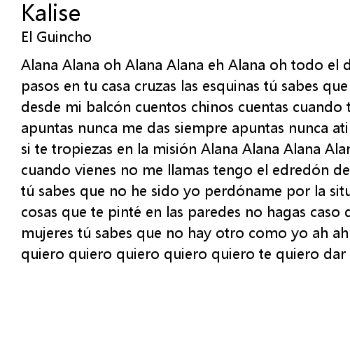 | Alana Alana oh Alana Alana eh Alana oh todo el di a escondida cuando escuchas pasos en tu casa cruzas las esquinas tu sabes que e se no soy yo te llamare desde mi balco n cuentos chinos cuentas cuando tiras con tu tirachinas siempres apuntas nunca me das siempre apuntas nunca atinas y tu sabes que puede ser peor si te tropiezas en la misio n Alana Alana Alana Alana cuando vienes nunca llamas cuando vienes no me llamas tengo el edredo n de lunas desangrado en la ventana tu sabes que no he sido yo perdo name por la situacio n no te ri as de las cosas que te pinte en las paredes no hagas caso de lo que te digan las otras mujeres tu sabes que no hay otro como yo ah ah ah te quiero dar mi voz si te quiero quiero quiero quiero quiero te quiero dar mi voz a ti |
