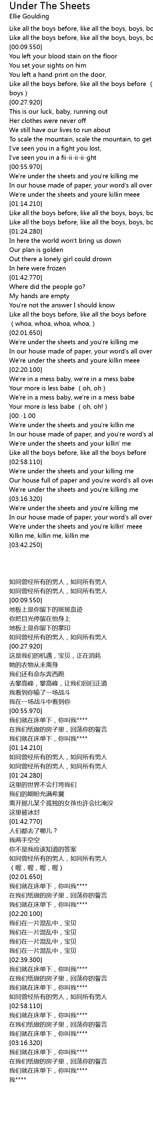 | [03:27.300] | We're under the sheets and you're killin' meee |