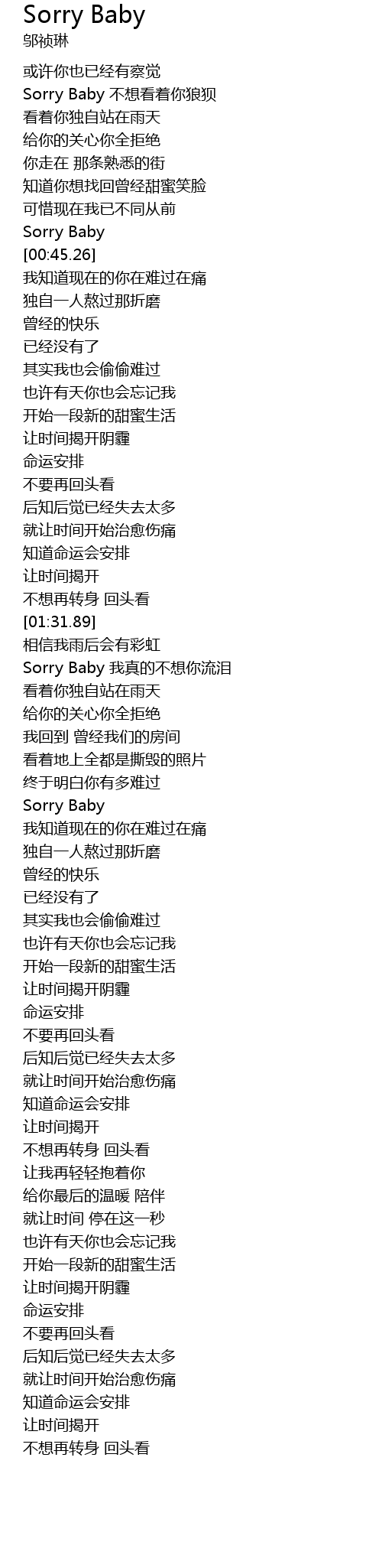 | [01:48.51] | Sorry Baby 我真的不想你流泪 |