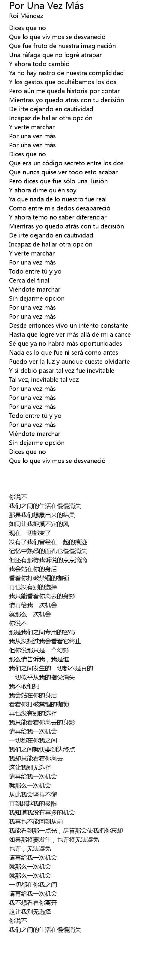 | [00:38.79] | Mientras yo quedo atrás con tu decisión |