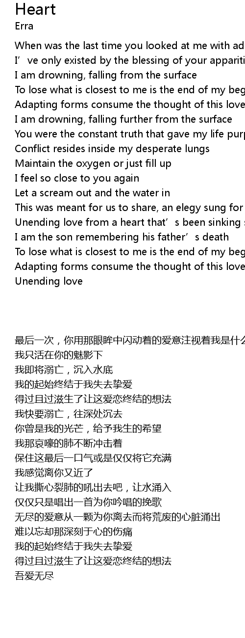 | [01:27.96] | Unending love from a heart that' s been sinking since you left |