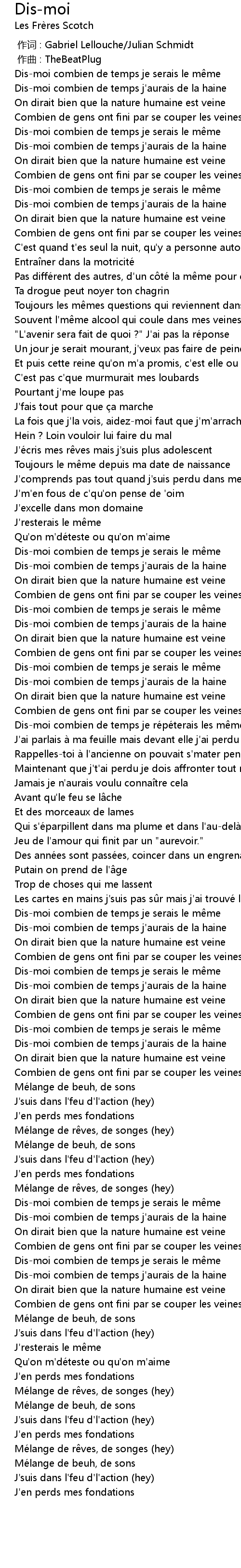 | [02:46.38] | Dismoi combien de temps j' aurais de la haine |