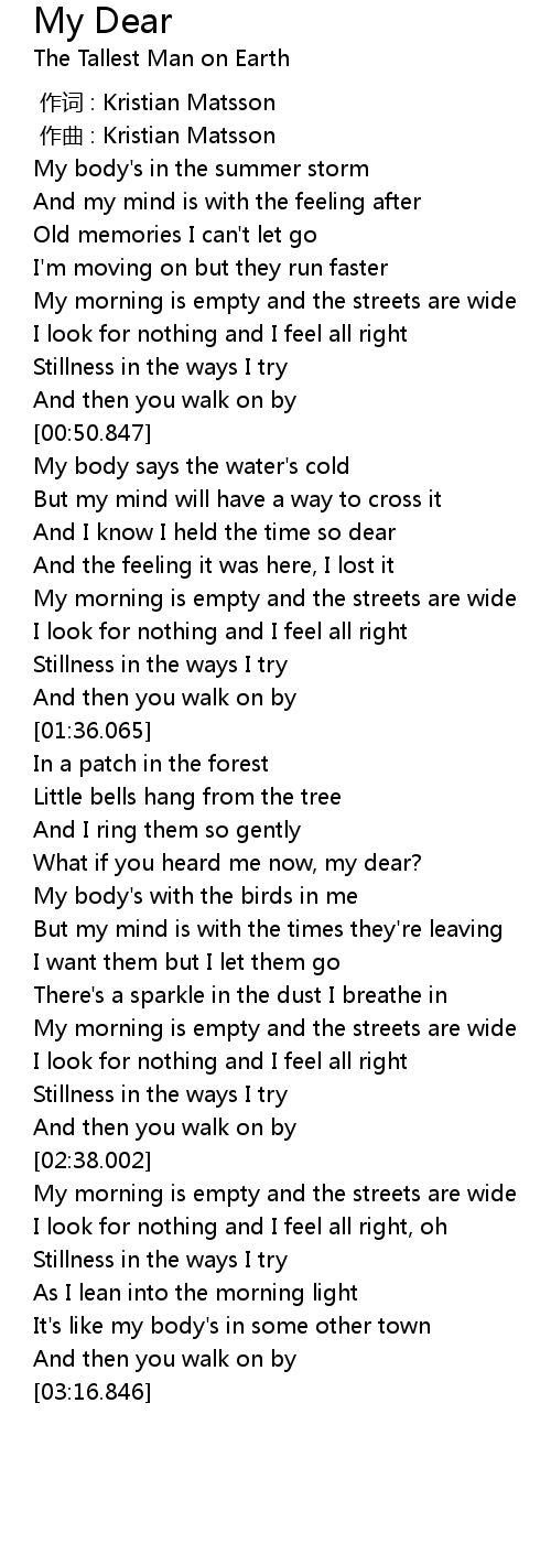 | [00:00.000] | zuò cí : Kristian Matsson |