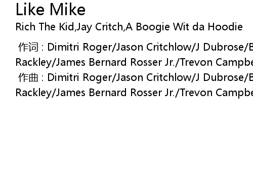 | [00:00.000] | 作词 : Dimitri Roger/Jason Critchlow/J Dubrose/Brandon Rackley/James Bernard Rosser Jr./Trevon Campbell |