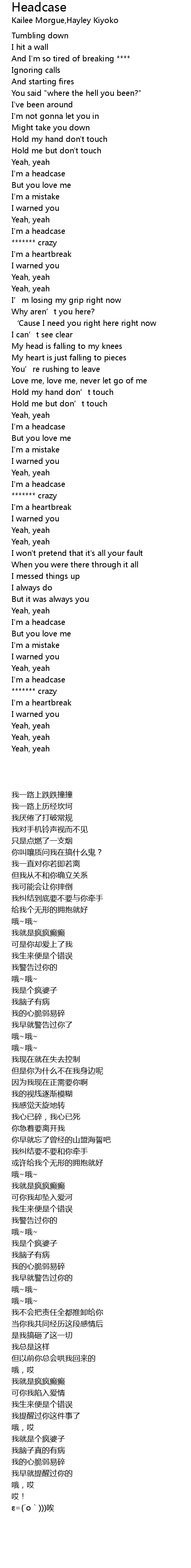 | [00:44.66] | I' m a headcase |