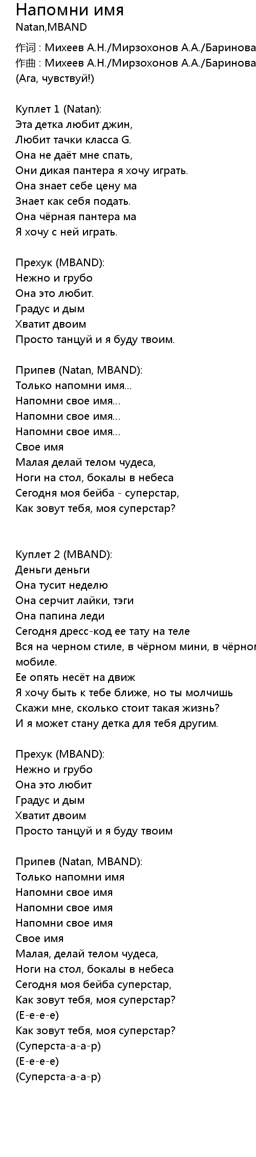 作词 : Михеев А.Н./Мирзохонов А.А./Баринова А.О. |