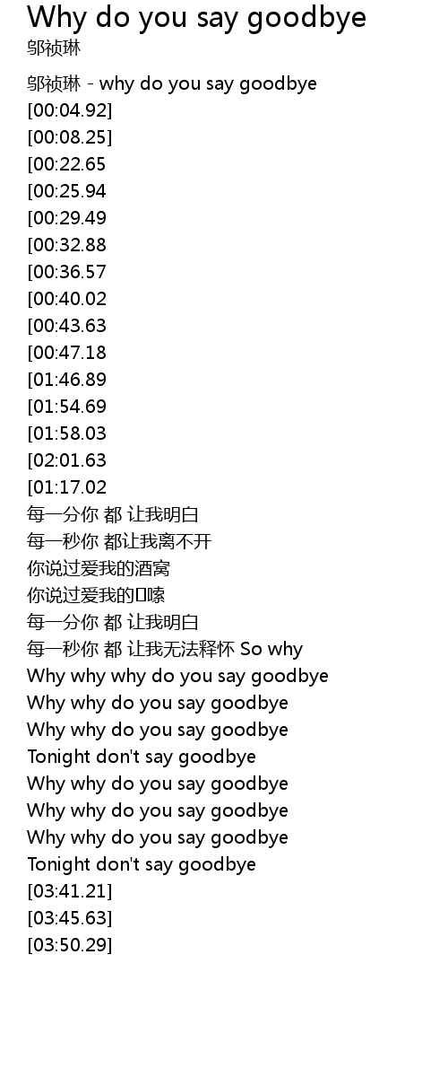 | [00:00.10] | 邬祯琳 - why do you say goodbye |