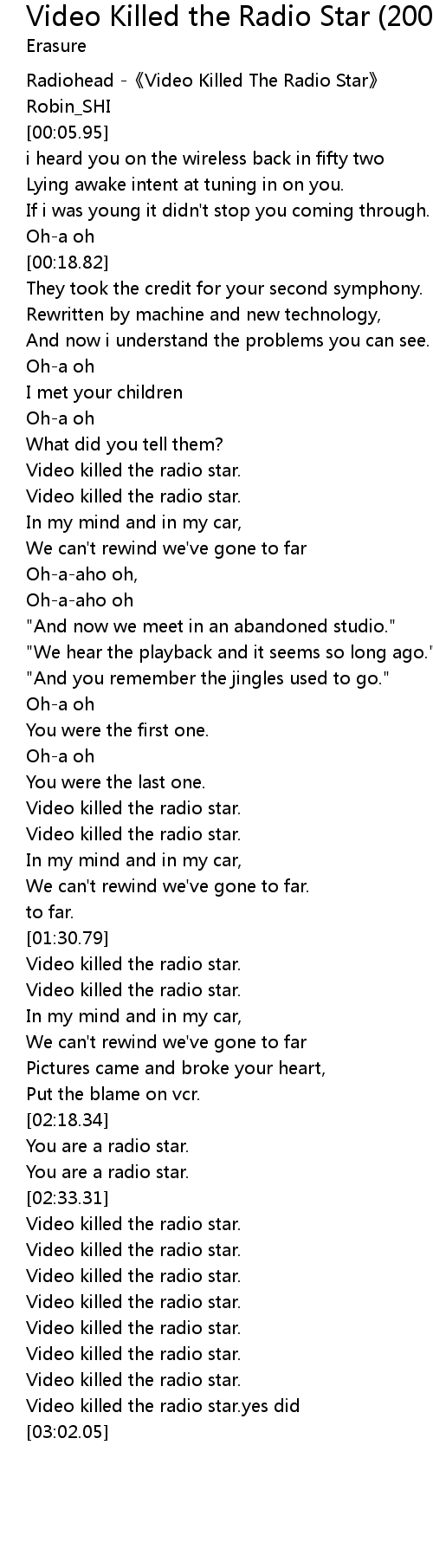 | [00:00.64] | Radiohead -《Video Killed The Radio Star》 |