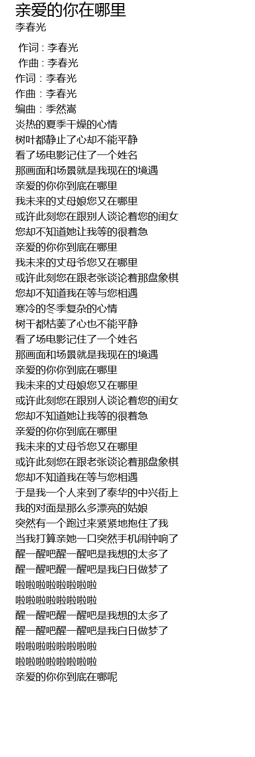 | [00:40.325] | 亲爱的你你到底在哪里 |