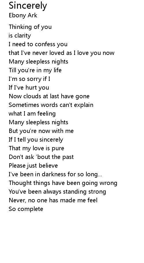 Sincerely Lyrics
