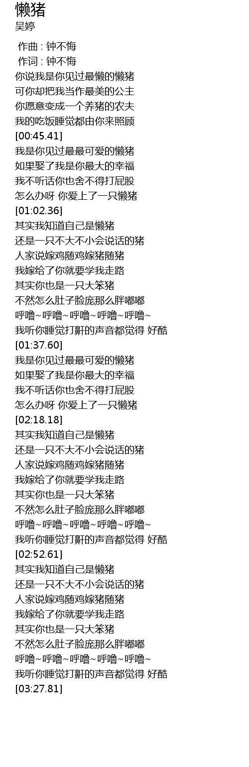[02:14.45] 怎么办呀 你爱上了一只懒猪