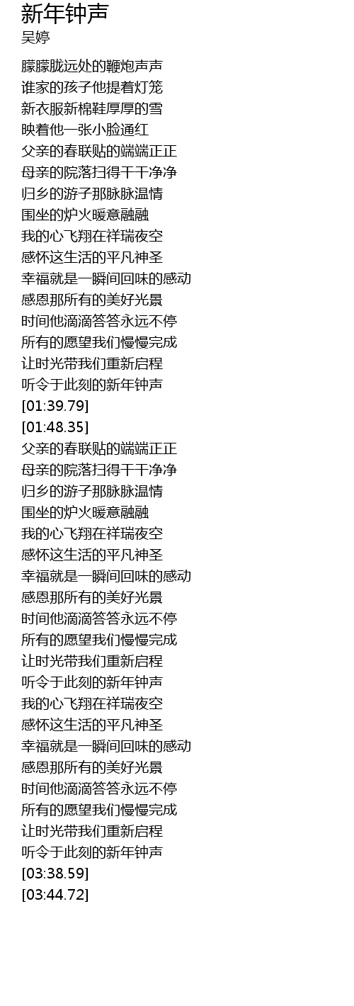 | [01:34.98] | 听令于此刻的新年钟声 |