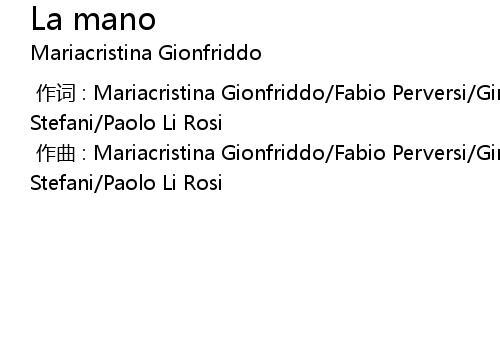 | [00:00.000] | 作曲 : Mariacristina Gionfriddo/Fabio Perversi/Gino De Stefani/Paolo Li Rosi |