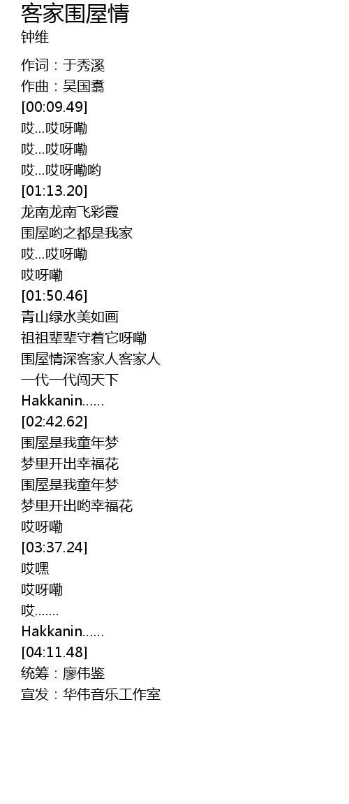 | [04:18.68] | 宣发:华伟音乐工作室 |