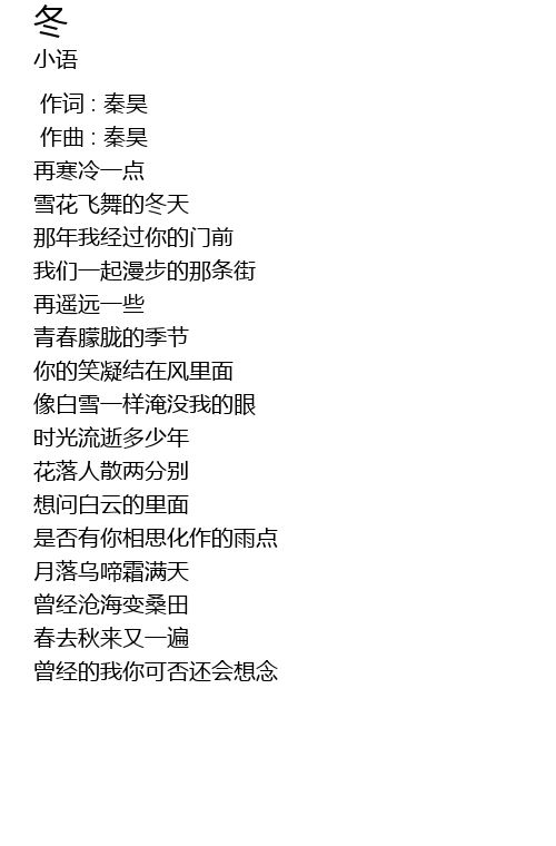 | [00:06.198] | xuě huā fēi wǔ de dōng tiān |