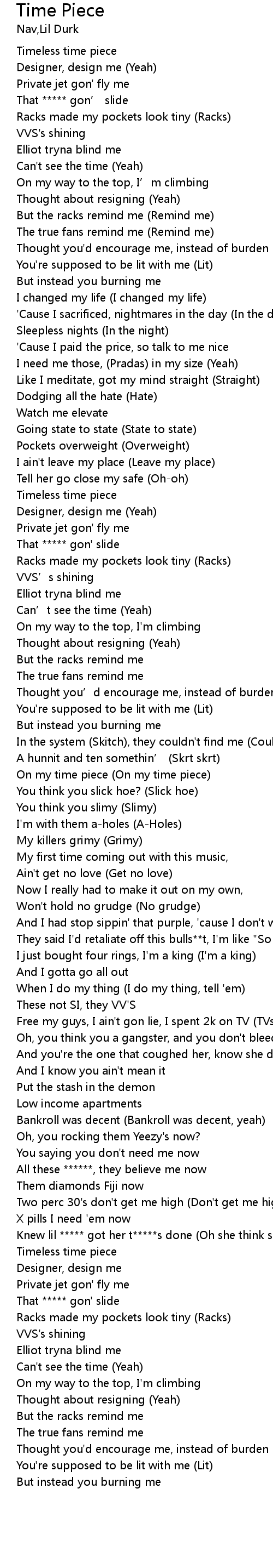 Time Piece Lyrics
