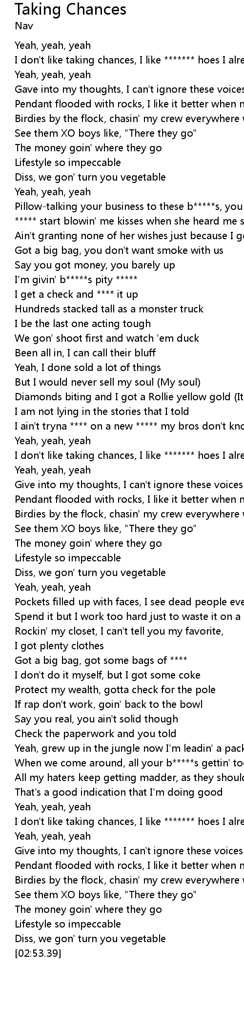 I don't like taking chances, I like ******* hoes I already know |