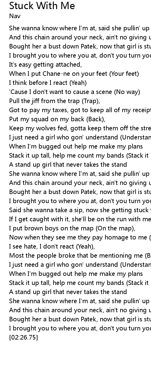Said she wanna take a sip, now she getting stuck with me (Stuck) |