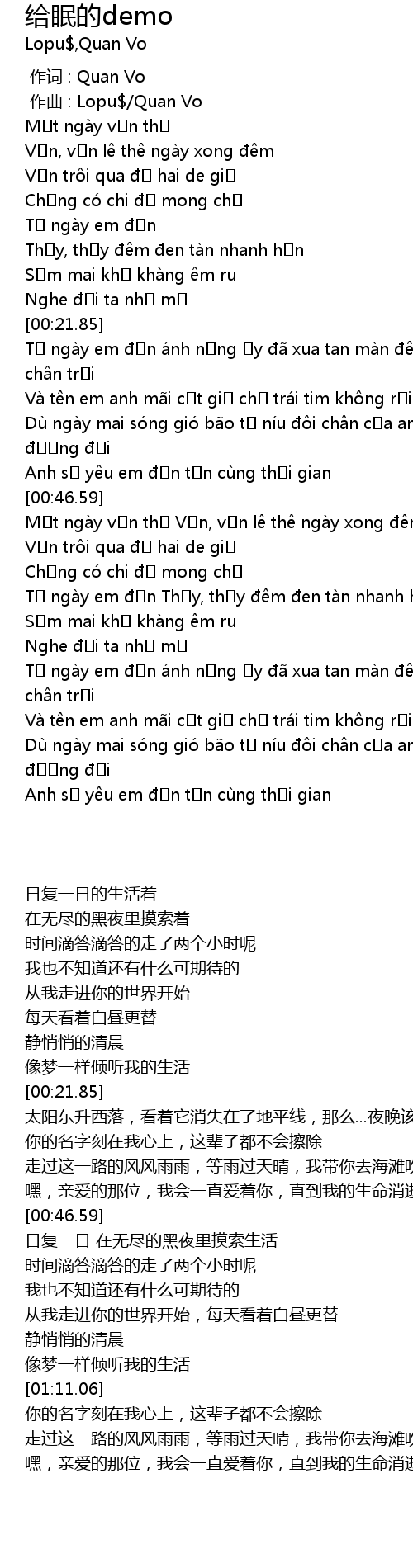 | [00:00.000] | 作词 : Quan Vo |