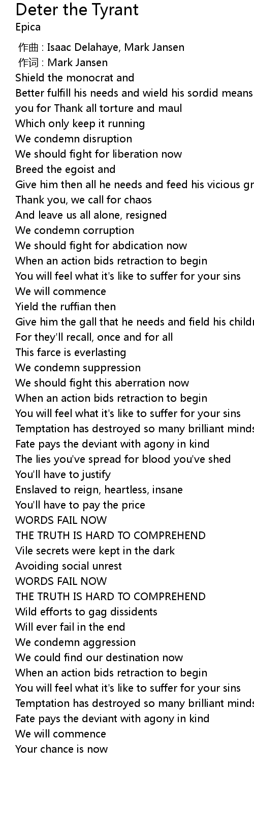 | [03:08.42] | The lies you' ve spread for blood you' ve shed |