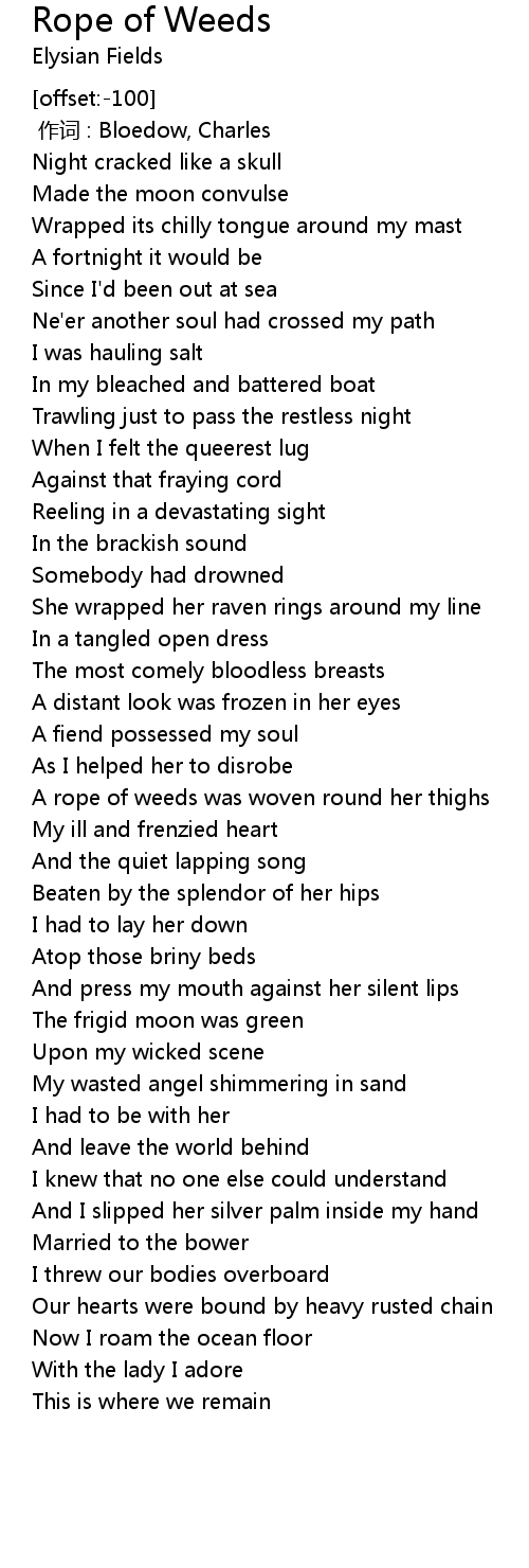 | [02:32.83] | A rope of weeds was woven round her thighs |