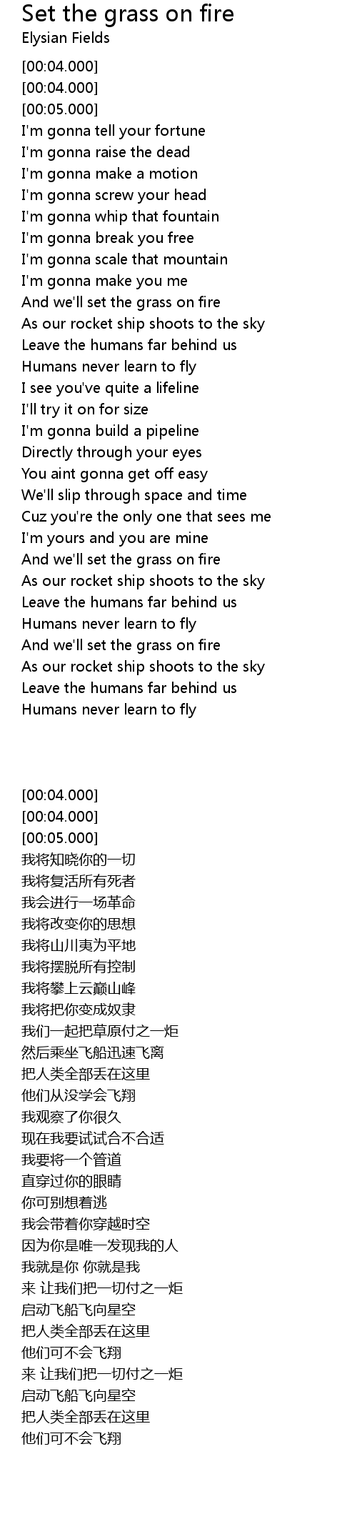 And we'll set the grass on fire |