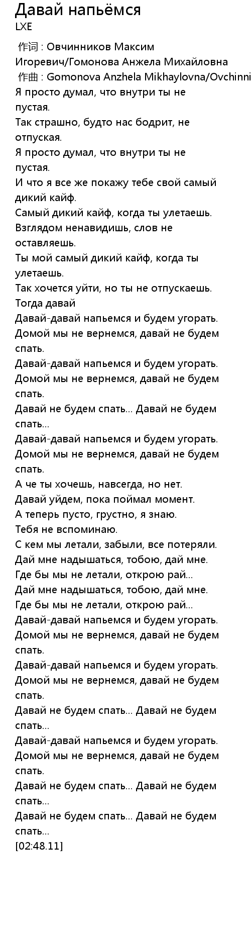 作词 : Овчинников Максим Игоревич/Гомонова Анжела Михайловна |