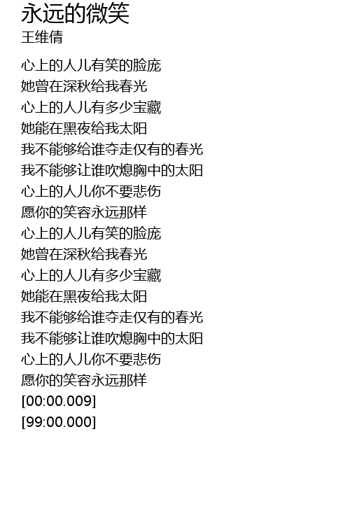 | [01:53.21] | 心上的人儿有笑的脸庞 |