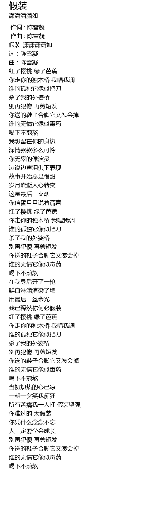 | [00:00.47] | 假装-潇潇潇潇如 |