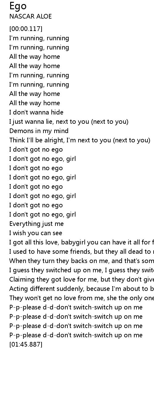I don't got no ego, girl |