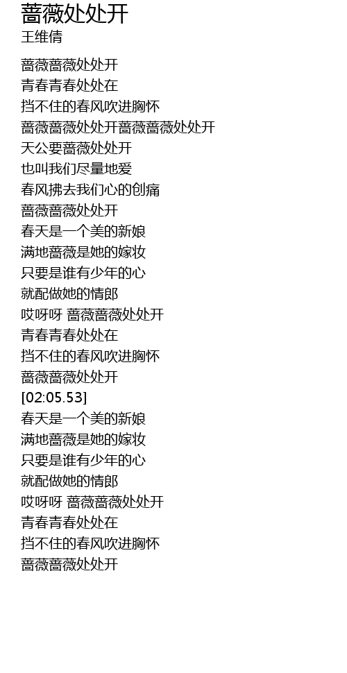 | [01:58.31] | 蔷薇蔷薇处处开 |