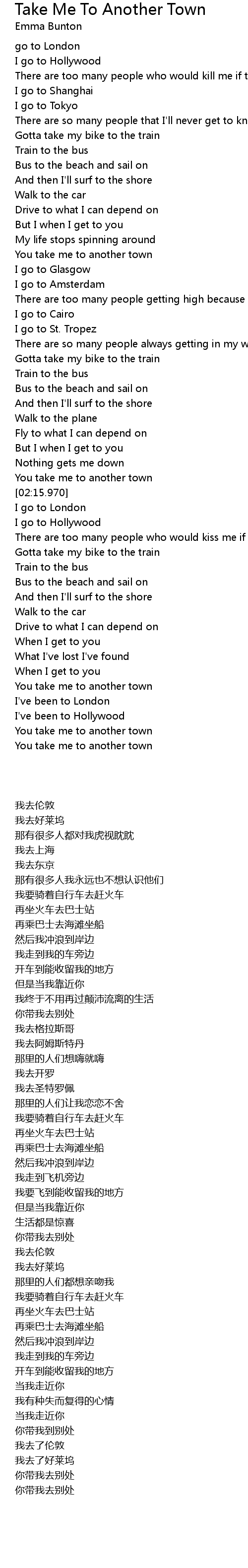 | [02:35.360] | I go to London |